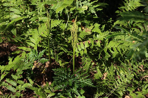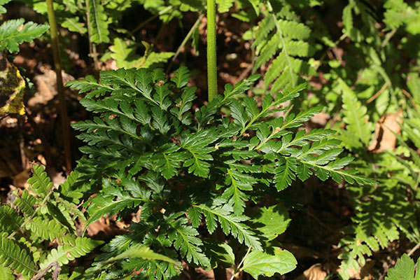 エゾフユノハナワラビの胞子葉が色付いてきました。エゾフユノハナワラビ(蝦夷冬花蕨) Botrychium multifidum var. robustum ハナヤスリ科ハナワラビ属
