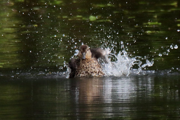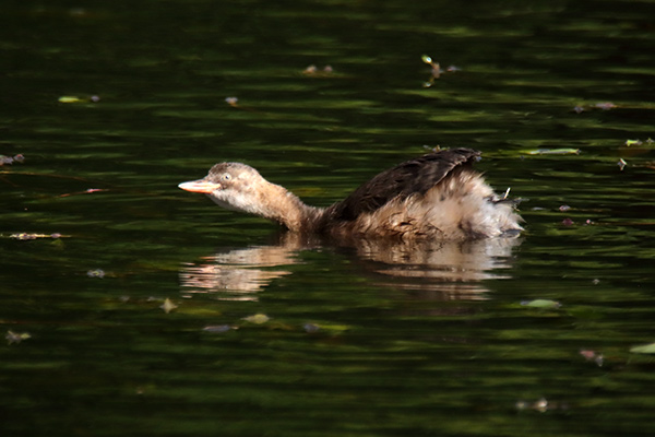 今朝の野鳥たち。先ずはカイツブリの幼鳥。